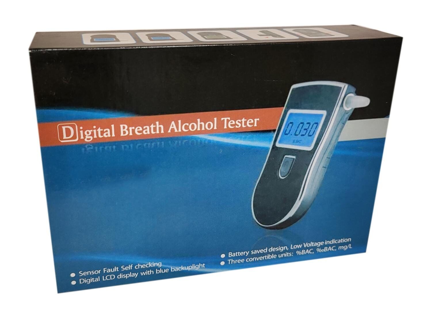 Digital alcohol test with audible alert.Digital backlight LCD display to show clear results both in days and nights. Its Comes with 5 Pcs Mouthpiece are manufactured by using quality assured material and advanced techniques, which make them up to the standard in this highly challenging field.Quick response and resume. Auto power off. Low battery alarm. Compact and light- weight, convenient to carry and self-test.