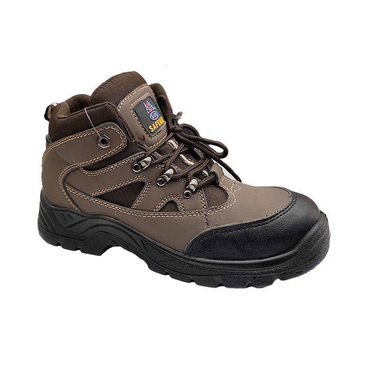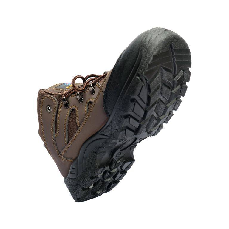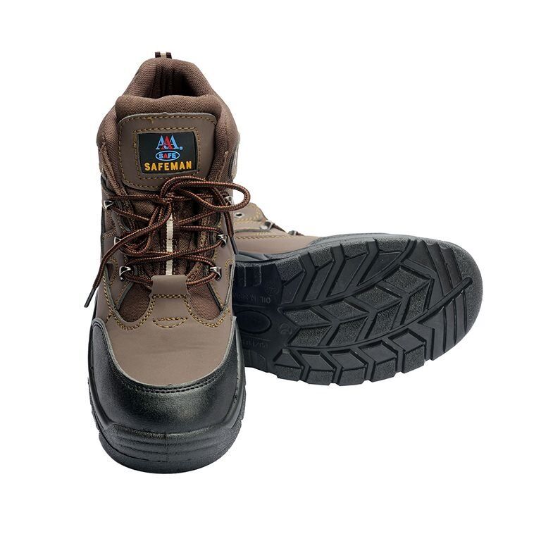Safeman heavy-duty mid-cut brown safety shoes deliver superior protection, comfort, and durability for rugged work environments. Featuring a reinforced steel toe cap meeting EN ISO 20345:2011 S1/S1P standards, dual-density PU outsole with deep treads, lightweight cushioned EVA midsole, and premium synthetic leather with breathable mesh upper, these safety shoes provide impact protection, slip resistance, shock absorption, and all-day comfort. Ideal for construction, logistics, warehousing, manufacturing, and general labor work. CE Certified and available in sizes 39-46.