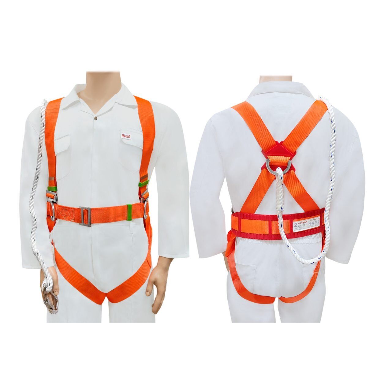 The AAA SAFE Safeman full body safety harness combines comprehensive fall protection features with ergonomic design for extended wear comfort. Engineered for construction, industrial maintenance, roofing, tower climbing, and scaffolding operations, this harness effectively distributes fall arrest forces across the entire body, minimizing injury risk during falls from height.
