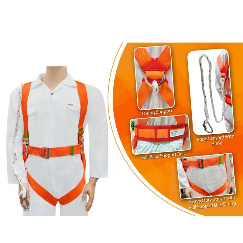 A: The full body safety harness is designed to support a weight capacity of up to 140kg; however, always verify the specific product’s load limits before use.