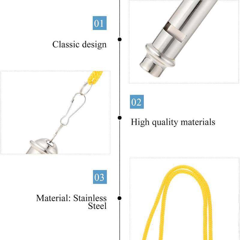 Made of food-grade 304 stainless steel. Each whistle comes with a soft braided lanyard for hands-free use. You can use it anywhere you need to get others’ attention quickly. There is a cork pea in our whistle. Our cork pea is made of natural large wooden cork, which is different from synthetic pea. When you blow it, it vibrates at a higher frequency, causing the whistle to emit a louder sound. It can reach up to 120db quickly.