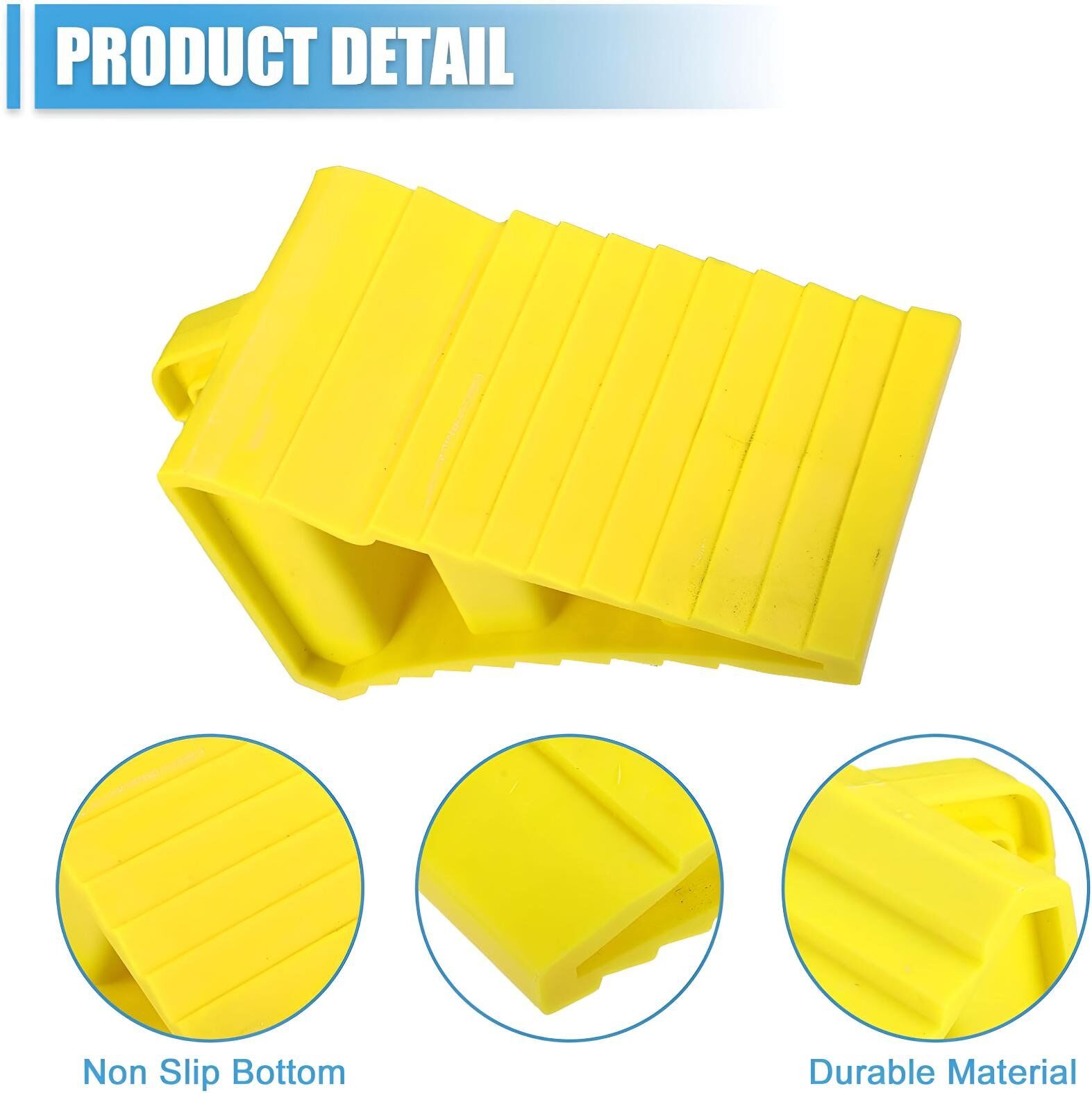 Wheel chocks are made from durable and plastic, long-lasting, oil resistant, the structure is strong and durable, all-weather construction for reliable performance in any climate.